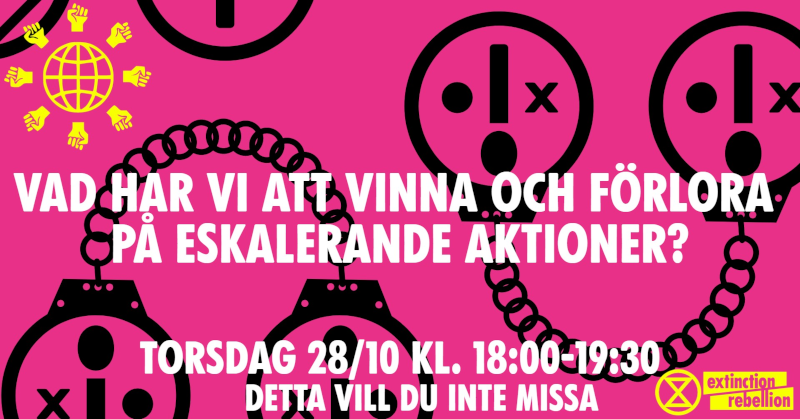 Igår, inför Cop26, genomförde Extinction Rebellion aktioner på åtta svenska flygplatser. Klimataktivister har gått ombord på flygplan och vägrat sätta sig, limmat fast sig på… Läs mer »Extinction Rebellion agerar på åtta svenska flygplatser