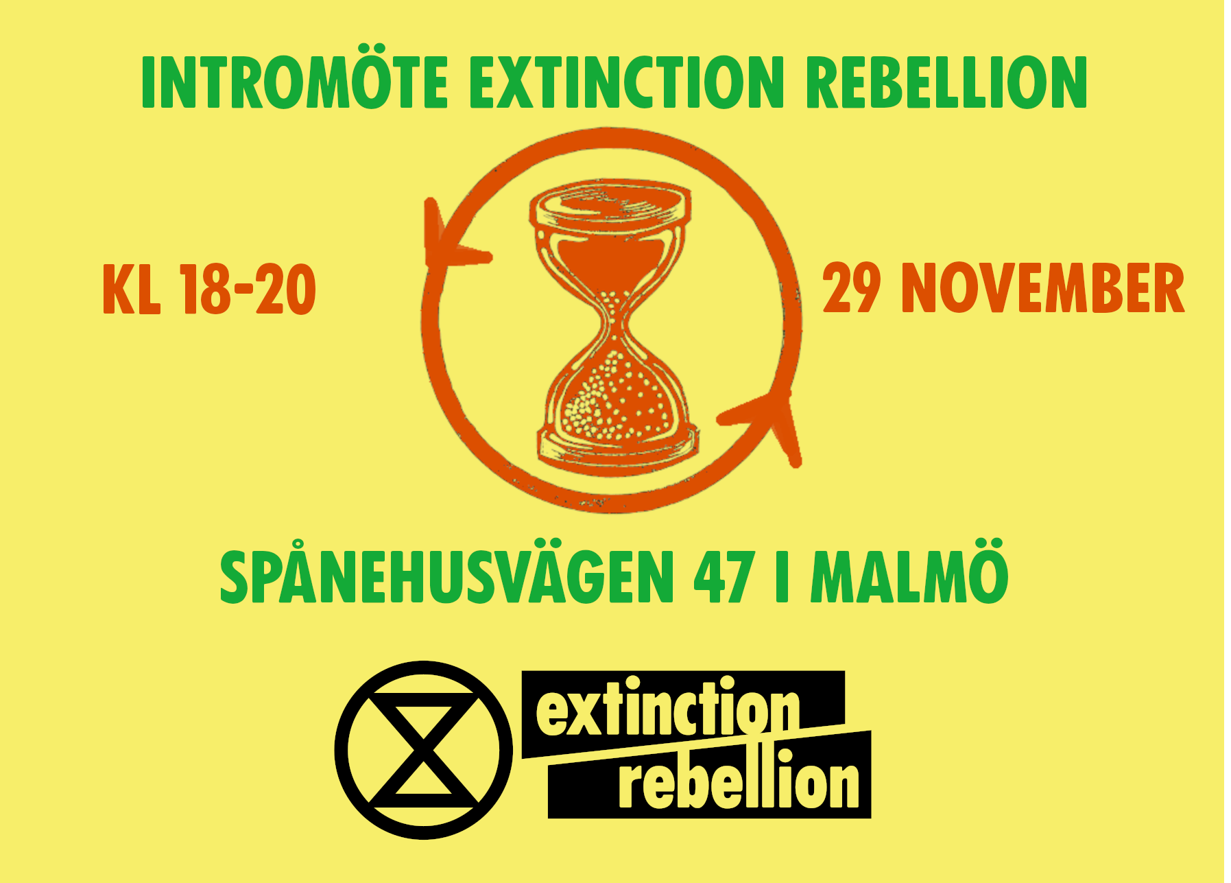 Välkommen på intromöte med Extinction rebellion 29/12 på Spånehusvägen 47 i Malmö, klockan 18-20!