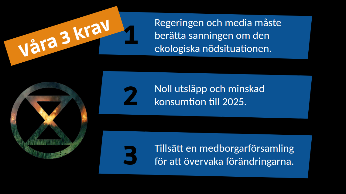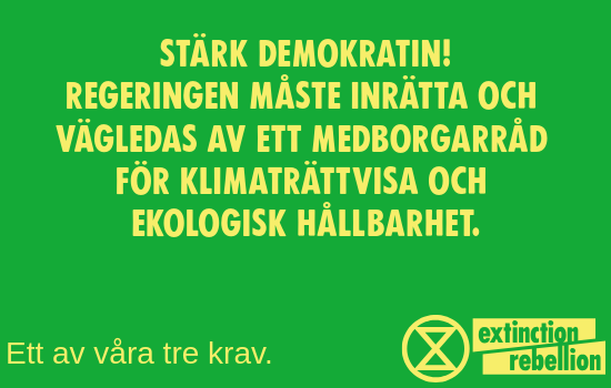 UPPRORETS KRAV 3 KRAV:TALA KLARSPRÅK. Regeringen måste utlysa nödläge för klimatet och jordens arter och tillsammans med andra aktörer kommunicera hur brådskande det är att… Läs mer »Stärk demokratin